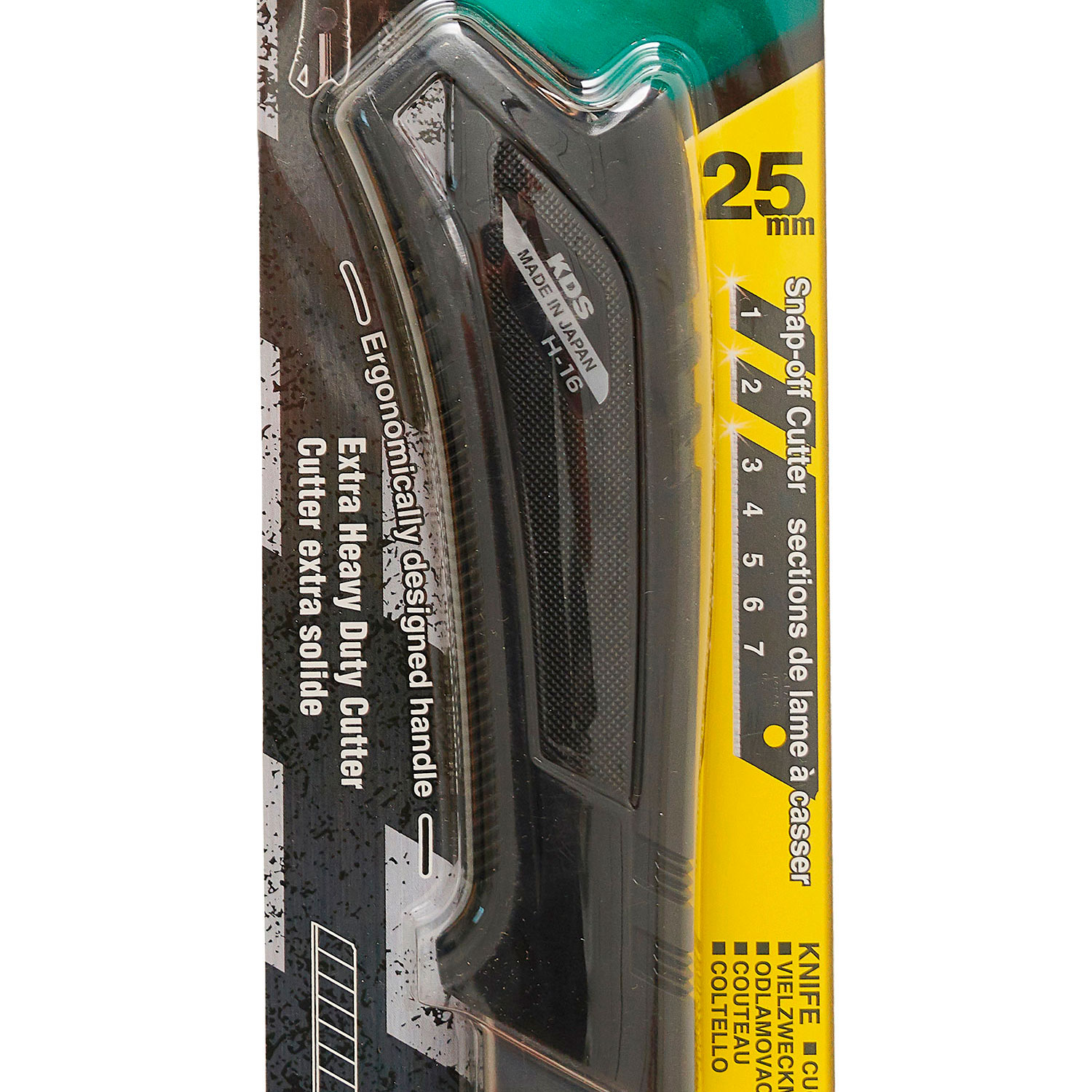 Cutter KDS H-16, diseñado para trabajos pesados, con un sistema de ajuste con tornillo que asegura la hoja de manera firme para cortes de alta precisión. Su hoja 25mm x 0.7mm extra fuerte garantiza cortes duraderos incluso en materiales gruesos y resistentes. La gran empuñadura ergonómica proporciona una excelente sujeción y reduce el esfuerzo durante el uso, haciendo que el trabajo prolongado sea más cómodo. Ideal para quienes necesitan una herramienta confiable para tareas intensivas.